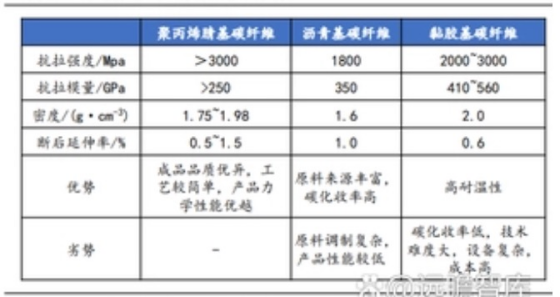 各類型碳纖維性能及優(yōu)劣勢對比